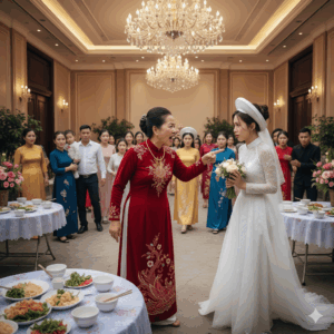 Buổi sáng hôm cưới, trời tạnh mưa rất đúng lúc, như ai đó rút êm một tấm rèm nước. Sân nhà hàng còn…