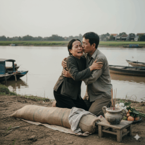 Bà Lan ngồi bên mâm cơm cúng, ánh mắt trống rỗng nhìn vào di ảnh của chị gái, cô Hoa, trên bàn thờ.…