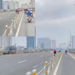 Đang lưu thông trên cầu Nhật Tân (Hà Nội), anh Quân phát hiện nhóm người đạp xe đạp tại làn dành cho ô…