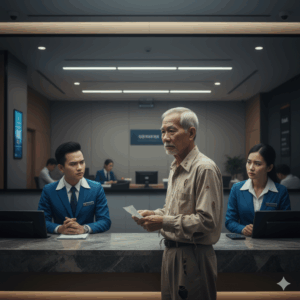 Ông Ba lê bước vào chi nhánh ngân hàng VietBank tại quận 1, Sài Gòn, vào một buổi sáng tháng Mười hai năm…