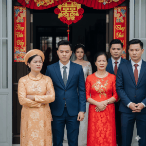 Ngày cưới, trời đổ mưa phùn từ lúc tờ mờ sáng. Đám cưới vốn định tổ chức ngoài sân vườn, giờ chuyển vội…