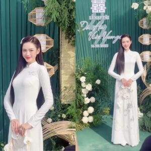 Trong lễ ăn hỏi sáng 16/10, Hoa hậu Đỗ Thị Hà chọn áo dài truyền thống màu trắng có kiểu dáng thanh lịch,…