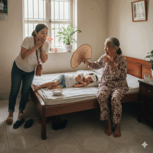 Con tôi mới hơn một tuổi, mấy hôm nay trở trời nên bé sốt li bì, người nóng ran như than đỏ. Tôi…