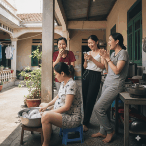 Giữa mùa lạnh, nước đá buốt đến tím người, còn anh thì mặt đỏ bừng, mồ hôi túa ra như vừa phạm lỗi.…