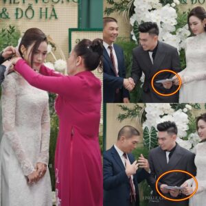 NGUỒN BÁO LAO ĐỘ NG: https://laodong.vn/giai-tri/chu-tich-tap-doan-son-hai-trao-hoi-mon-cho-con-trai-va-hoa-hau-do-thi-ha-1596213.ldo Đỗ Thị Hà đã về tới nhà chồng, được mẹ chồng ra tận nơi che nón dìu…