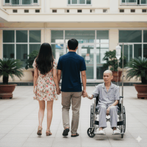 Người đàn bà nằm trên giường bệnh, thân hình gầy gò, đôi mắt thâm quầng nhưng vẫn gắng mỉm cười mỗi khi thấy…