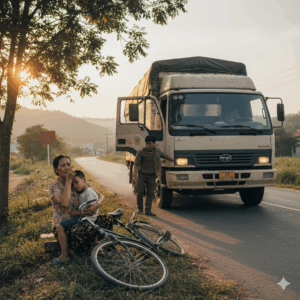 Ít phút trước tại cổng trường THCS Gia Thuỵ – Long Biên, xe tải va chạm với một em bé đang trên đường…