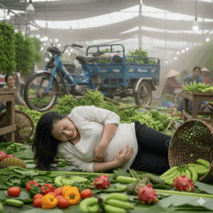 Sáng hôm ấy, chợ vẫn đông nghịt người. Giữa những tiếng rao bán ồn ào, có một người phụ nữ bụng bầu vượt…