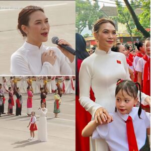 Ngay từ mở màn, giọng ca trong trẻo của em bé Hà Thủy Tiên vang lên cùng Tiến Quân Ca, hòa quyện với Mỹ Tâm đầy khí…