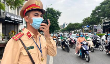 Lực lượng CSGT có mặt để đảm bảo trật tự an toàn giao thông.