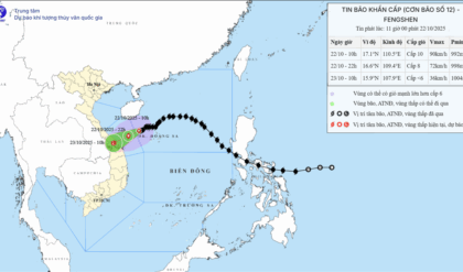 Bão số 12 (Fengshen) di chuyển vào khu vực biển TP Huế – Quảng Ngãi trong chiều nay (22/10). Mưa lớn bắt đầu trút xuống Quảng Trị – Quảng Ngãi, nguy cơ ngập lụt, lũ quét tại hơn 100 xã, phường.