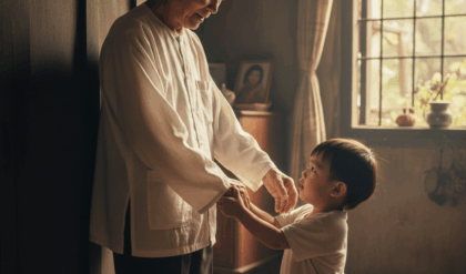 Căn hộ tầng mười vẫn mùi nước giặt và sữa ấm. Tôi bấm chuông. Hân mở cửa, nhìn tôi, sự ngạc nhiên còn chưa kịp hiện đủ trên mặt thì tay đã theo phản xạ đỡ lấy tay tôi. “Mẹ… mẹ quên gì à?” Nó hỏi, giọng nhỏ như hạt muối. Tôi dở túi vải, đặt cái phong bì lên bàn.