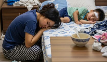 Trong không khí tang thương, tiếng khóc nghẹn của người dân khu phố vang lên mỗi khi nhìn di ảnh anh H. trên bàn thờ, bên cạnh là đứa con thơ mắc bệnh thần kinh đang lặng lẽ chịu tang.