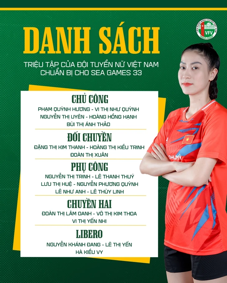 Được biết đợt tập trung này, tuyển bóng chuyền nữ Việt Nam sẽ có chuyến tập huấn tại Quảng Ninh trong 2 tháng nhằm chuẩn bị cho SEA Games 33. 2 VĐV là Trần Thị Thanh Thúy và Trần Thị Bích Thủy bận tham gia Giải vô địch quốc gia Nhật Bản nên không có tên trong danh sách này.