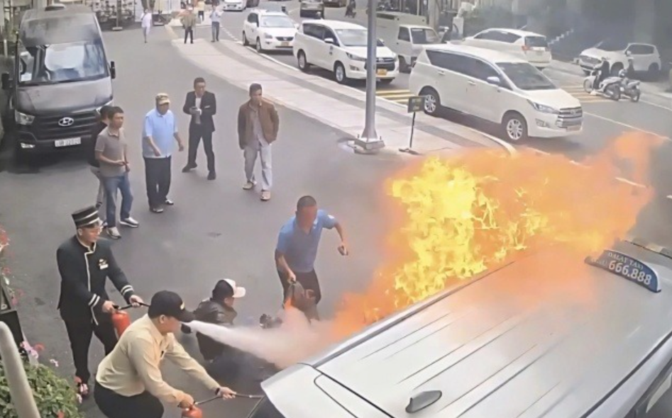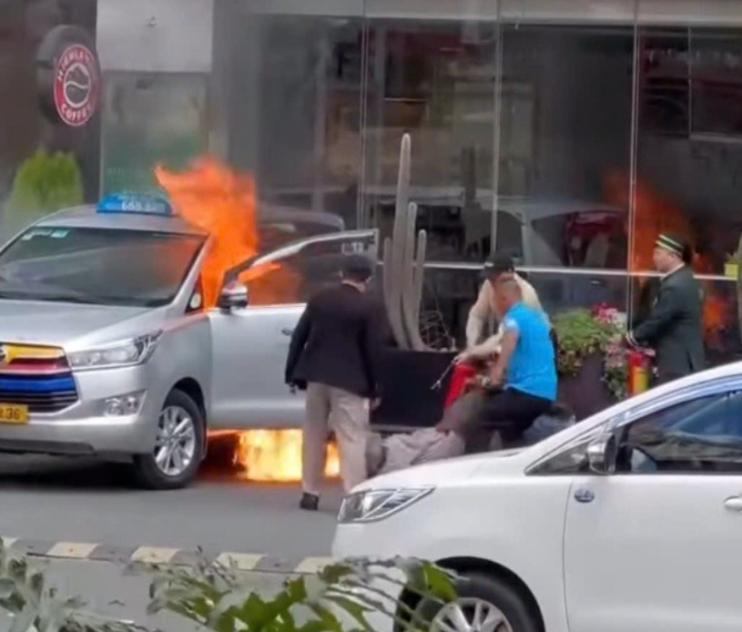 Ngày 15/10, tại khu vực bãi đỗ xe một khách sạn trên đường Bùi Thị Xuân, phường Xuân Hương, TP. Đà Lạt, một chiếc taxi bốc cháy bất ngờ khiến nhiều người chứng kiến hoảng hồn. Ngọn lửa xuất hiện vào khoảng 9h40, lan nhanh bên trong khoang xe, đe dọa trực tiếp đến tính mạng tài xế.