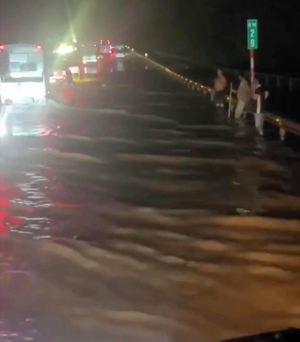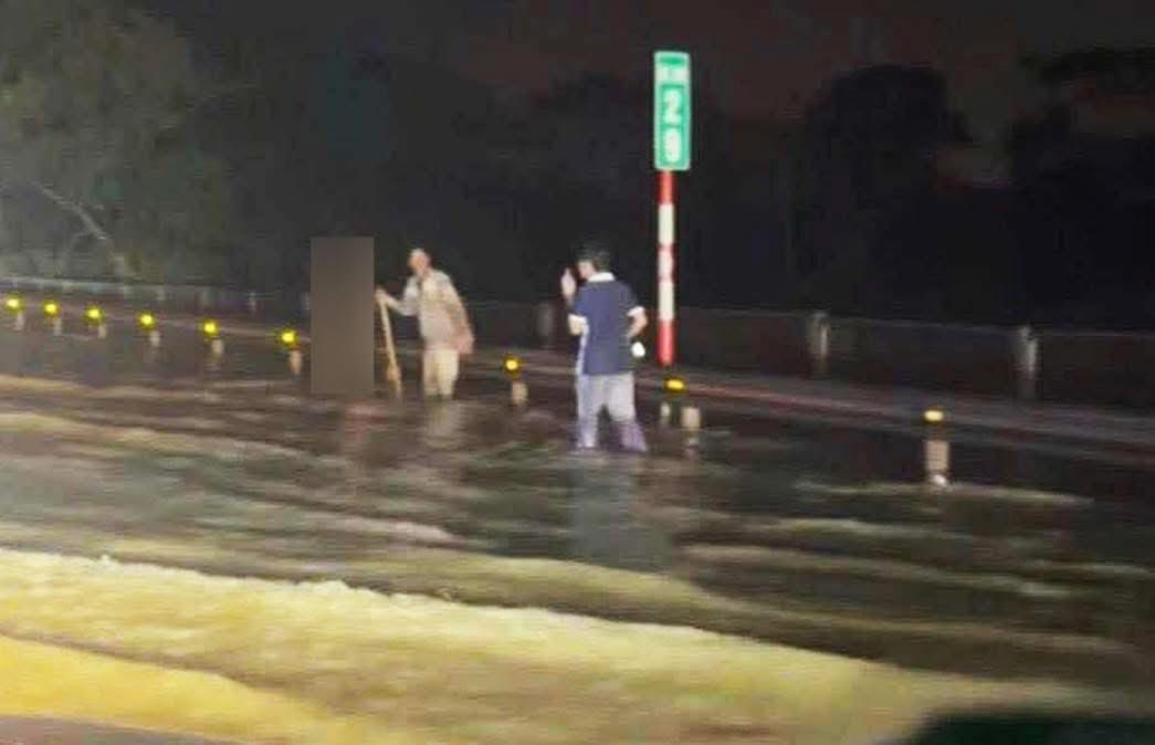 Cụ thể, tại Km29 cao tốc Hà Nội – Thái Nguyên, hướng Thái Nguyên đi Hà Nội (đoạn qua xã Trung Giã), mực nước ngập khoảng 20cm, kéo dài hơn 100m.