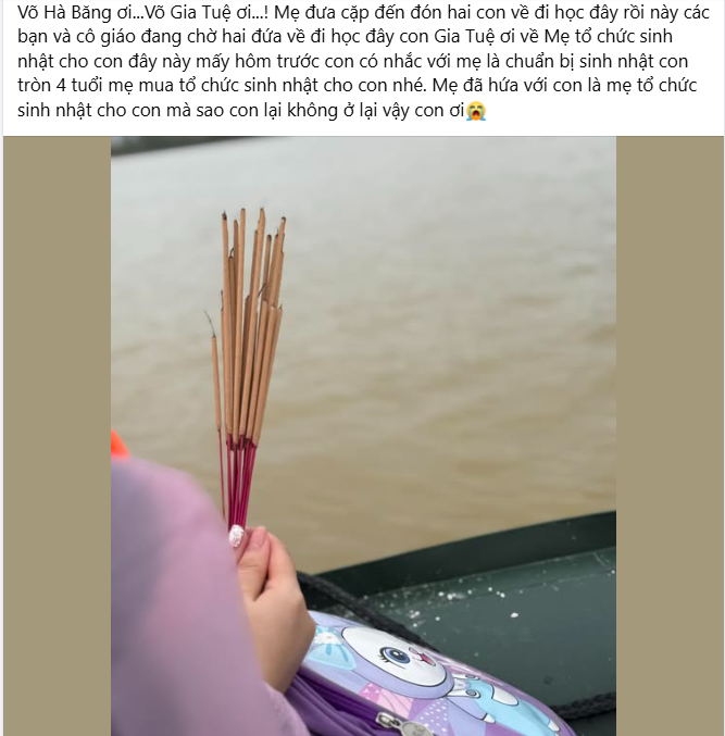 Bố Võ Văn Duẫn Sn 1993 Con gái Võ Hạ Băng 5 tuổi Võ Gia Tuệ chuần bị sinh nhật 4 tuổi. Gia đình và người thân đứng trên bờ đợi chờ một cuộc gọi báo về của anh em trong đội. Xin hãy thêm một lời cầu Nguyện cho 3 Bố con đặc biệt cho hai bé Hạ Băng và Gia Tuệ sớm cho đội tìm thấy để đưa các con về với gia đình ak