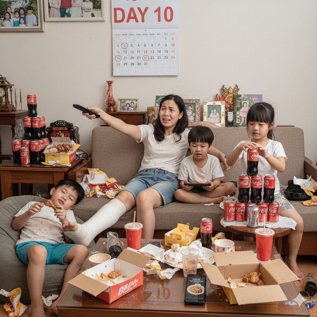 Tôi gãy chân nghỉ ở nhà, em chồng gửi ba đứa con sang nhờ tôi trông. Tôi không từ chối, ngày nào cũng đặt gà rán, nước ngọt cho chúng. Mười ngày sau…