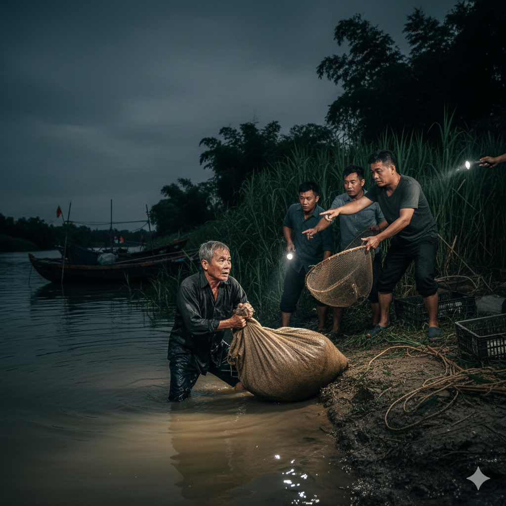 Người ta bắt đầu để ý: cứ 2 giờ sáng, Ba Lụa xuống nước. Lão cởi áo bỏ trên bờ, buộc một cái túi ni lông kín vào lưng, rồi lặng lẽ bơi sang bãi bồi bên kia.