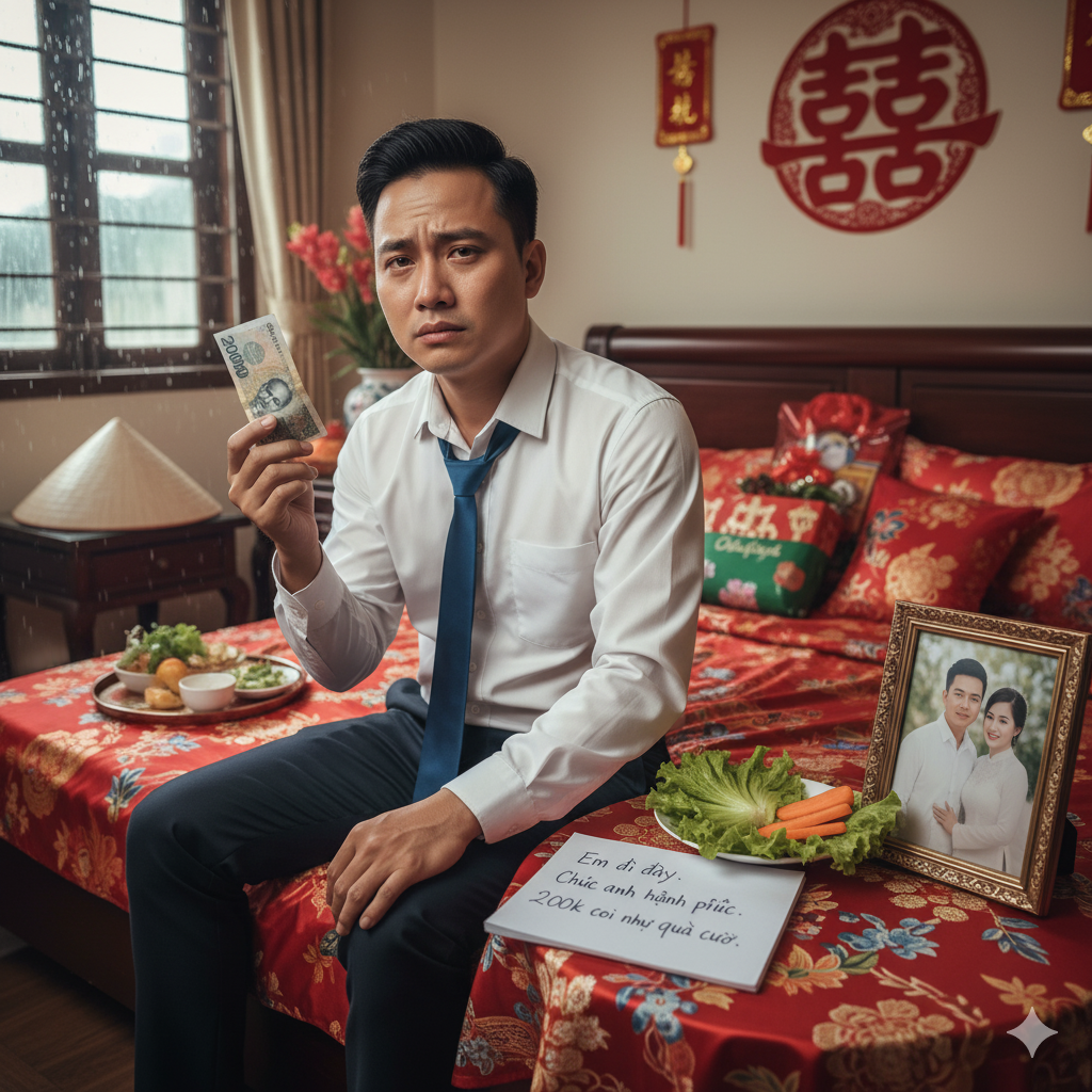 Tôi vẫn nhớ rất rõ cái buổi sáng đầu tiên sau đêm tân hôn ấy—khi mở mắt ra, thứ đầu tiên tôi nhìn thấy không phải là gương mặt người vợ mới cưới, mà là… một tờ 200 nghìn đặt gọn gàng trên chiếc gối kế bên.