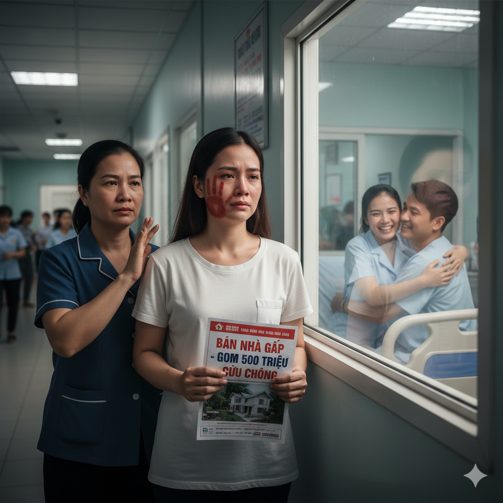 Anh nằm đó, trên giường bệnh của khoa tim mạch. Khuôn mặt anh trắng bệch, đôi môi khô nứt. Bác sĩ nói cần phẫu thuật gấp, chi phí tạm tính 500 triệu. Tôi chẳng nghĩ gì thêm, chỉ biết chạy về nhà, gom giấy tờ, cắm sổ đỏ rồi bán căn nhà ba phòng ngủ mà hai vợ chồng dành dụm suốt 10 năm mới có được.