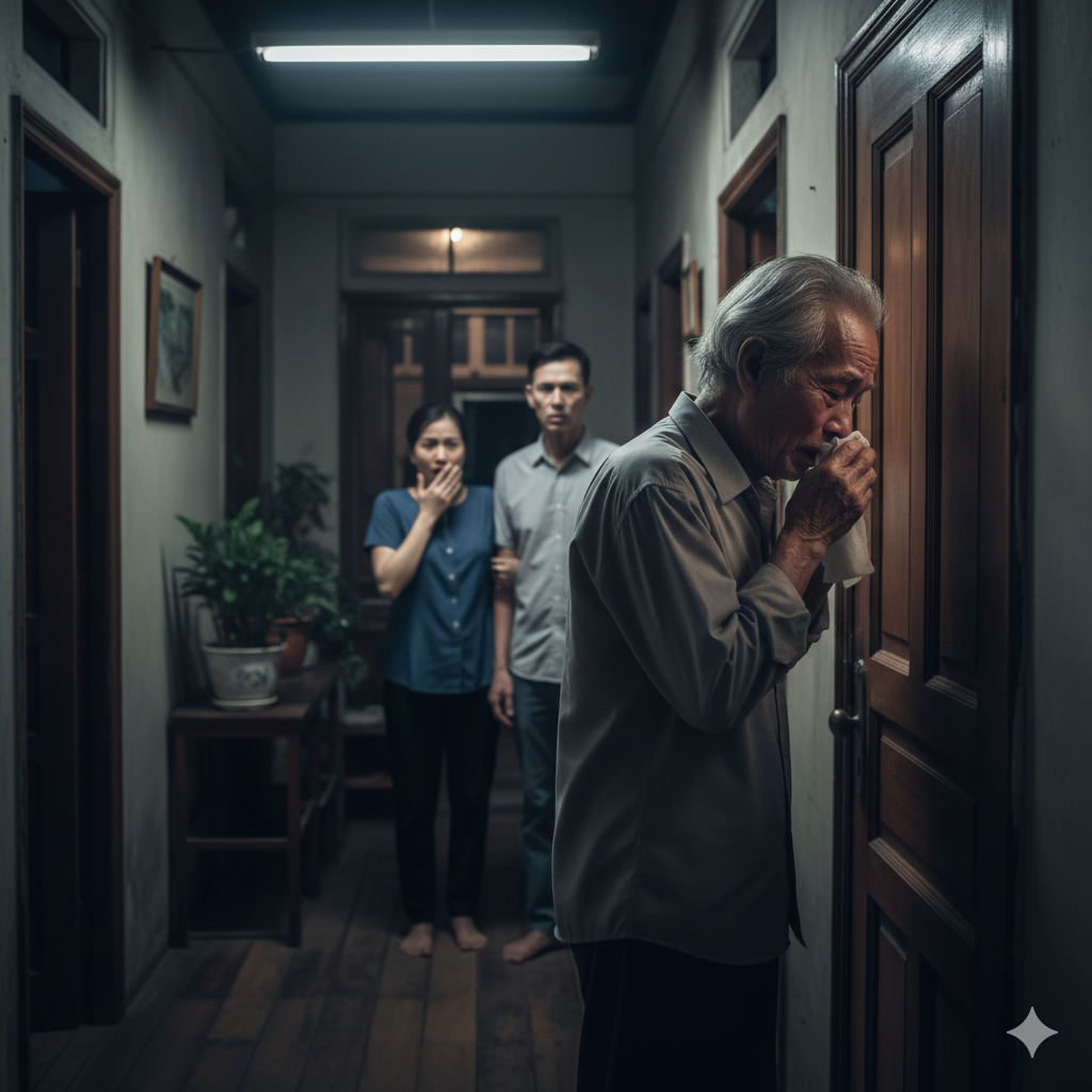 Tôi định gõ cửa hỏi thăm, ai ngờ thấy bố chồng tôi đang đứng trước cửa, tay run run chạm vào vách tường, mắt đỏ hoe.