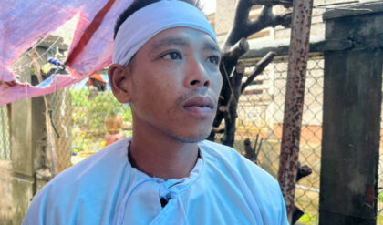 Bố mở cửa, mắt ngạc nhiên rồi đanh lại: “Mày về làm gì? Tao đã—”