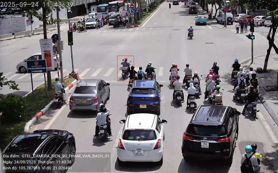 Qua trích xuất dữ liệu từ 2 camera AI được thí điểm lắp đặt tại phố Phạm Văn Bạch, Hà Nội, từ 0h đến 12h ngày 24/9, đã tự động phát hiện 343 trường hợp người điều khiển mô tô không đội mũ bảo hiểm; 1452 trường hợp không chấp hành hiệu lệnh của đèn tín hiệu, vượt đèn đỏ (1339 xe mô tô; 113 xe ô tô); 3 trường hợp xe mô tô đi ngược chiều.