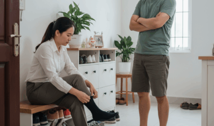 Thế nhưng mọi chuyện vượt quá sự chịu đựng của tôi vào một tối mưa. Hôm đó, tôi thấy cô ấy đi một đôi tất đen — rõ ràng là tất đàn ông. Tôi hỏi thì vợ cười nhẹ: