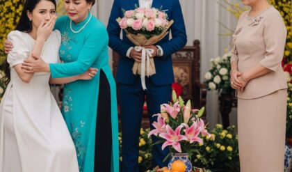 Bà vẫn là gương mặt ấy, nhưng đôi mắt có thứ gì đó lạnh hơn, từng trải hơn. Trên tay bà là hai chiếc vali đen bóng, căng phồng đến mức khóa muốn bật tung.