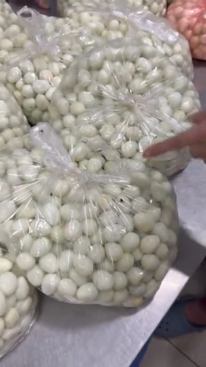 Trứng cút, thịt tươi sống cũng được ghi nhận có mùi lạ, đóng gói trong túi nilon không đảm bảo vệ sinh (cắt từ clip)