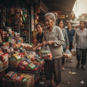 1. Bà cụ xin bánh kẹo ở cuối chợ Chợ Bến Nghé vào buổi chiều lúc nào cũng ồn ào tiếng rao.Có một…