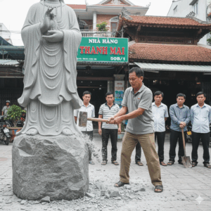 Nhưng có điều, trong khoảnh khắc hòn đá vỡ, ông chợt cảm thấy một luồng gió lạnh chạy dọc sống lưng,