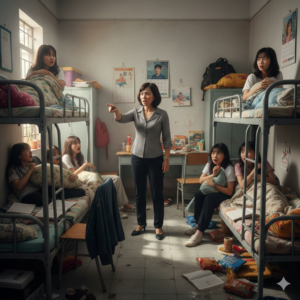 Tôi là giáo viên chủ nhiệm, được phân công trực đêm trông coi nhóm sinh viên nữ ở lại ký túc xá trong…