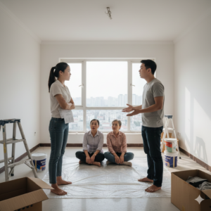 Ánh nắng chiều tà rải vàng trên sàn gỗ mới tinh của căn hộ tầng 25. Mùi sơn tường và vữa xi măng…