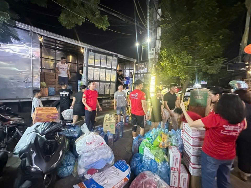 Từ Ninh Bình đến Hải Phòng, Thanh Hoá, nhiều chuyến xe chở đầy cơm nắm, nước uống và nhu yếu phẩm chạy xuyên đêm đến Thái Nguyên, tiếp sức cho bà con vùng ngập.